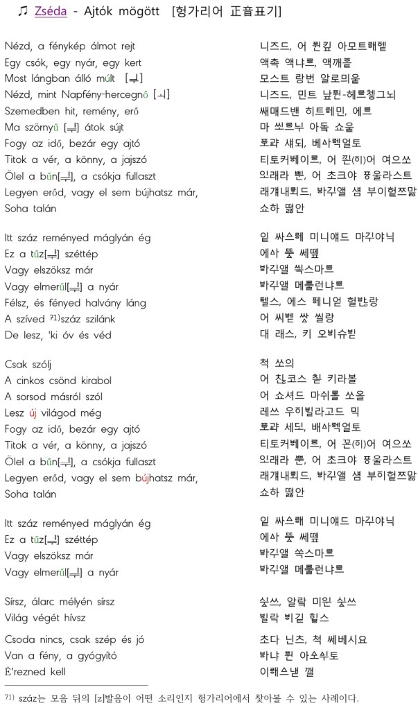 saccol [셔ᇹ초ᇙ] cica [치ᇹ카] csiga [치가]