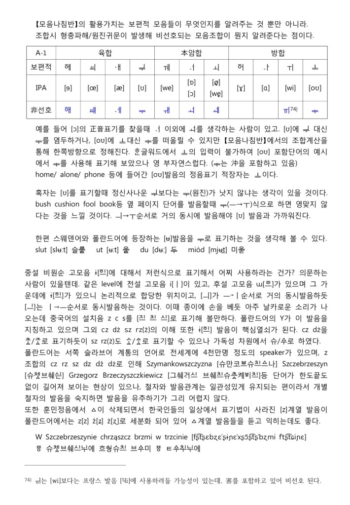 로마자에선 Y/Z가 끼어들며 길어지지만, 정음에서는 콤팩트한 모음으로 조합된다.