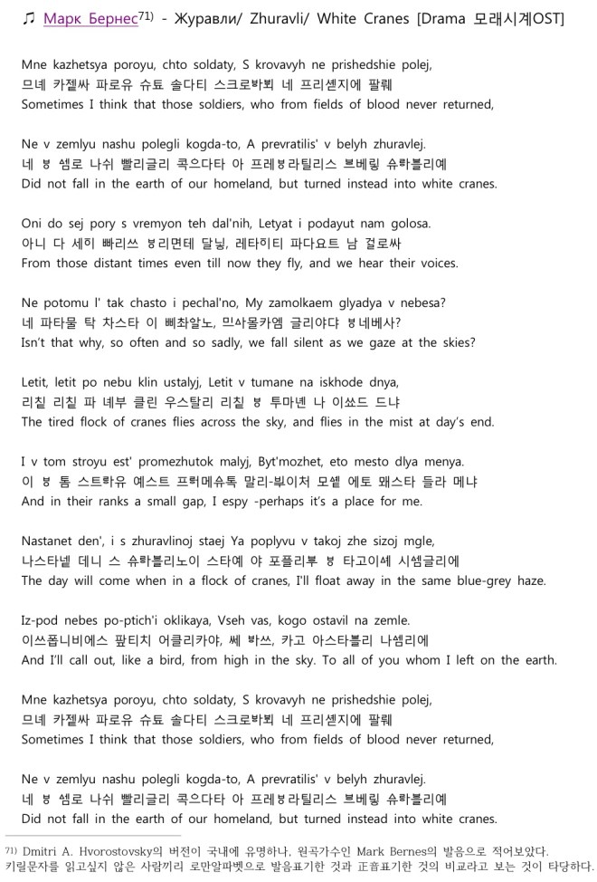 Журавли/ Zhuravli/ White Cranes [Drama 모래시계OST] 正音으로_듣고쓰다(출판)165다운로드 正音으로_듣고쓰다(출판)166다운로드 이 글 공유하기:공유 클릭하여 친구에게 이메일로 링크 보내기 (새 창에서 열림) 전자우편 클릭하여 X에서 공유 (새 창에서 열림) X Tumblr로 공유하기 (새 창에서 열림) Tumblr Telegram에 공유하려면 클릭하세요. (새 창에서 열림) Telegram LinkedIn으로 공유하기 (새 창에서 열림) LinkedIn Reddit으로 공유하기 (새 창에서 열림) 레딧