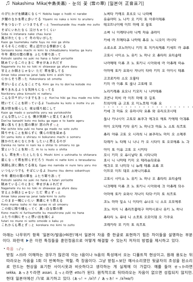 Nakashima Mika – 눈의 꽃 (雪の華) 나무위키 항목 ‘일본어/발음(r46판)’ 이 글 공유하기:공유 클릭하여 친구에게 이메일로 링크 보내기 (새 창에서 열림) 전자우편 클릭하여 X에서 공유 (새 창에서 열림) X Tumblr로 공유하기 (새 창에서 열림) Tumblr Telegram에 공유하려면 클릭하세요. (새 창에서 열림) Telegram LinkedIn으로 공유하기 (새 창에서 열림) LinkedIn Reddit으로 공유하기 (새 창에서 열림) 레딧